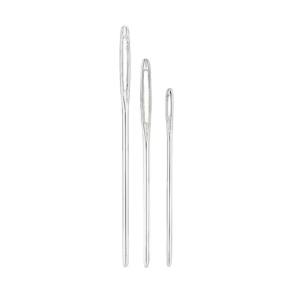Three silver NTR Stainless Steel Plaiting Needles on a white background. By Kylie Wallace | 24/11/2018 Three silver NTR Stainless Steel Plaiting Needles on a white background.