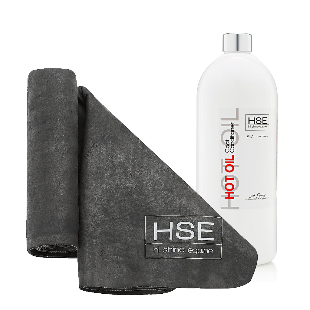 A black towel and bottle with the word HSE on it, part of the HSE Hot Oil & CoolGroom Combo. By Kylie Wallace | 31/10/2021 A black towel and bottle with the word HSE on it, part of the HSE Hot Oil & CoolGroom Combo.