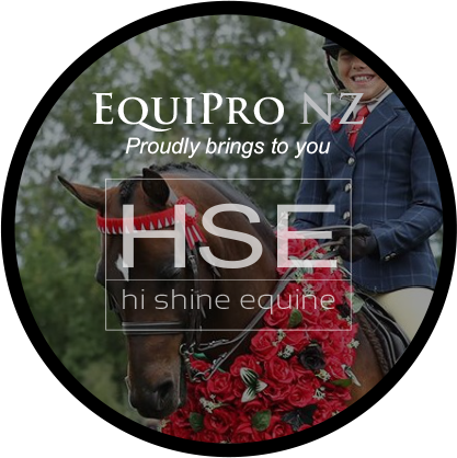 A person riding a horse adorned with red roses, under the text “EquiPro NZ proudly brings to you HSE hi shine equine. By Kylie Wallace | 15/11/2024 A person riding a horse adorned with red roses, under the text “EquiPro NZ proudly brings to you HSE hi shine equine.