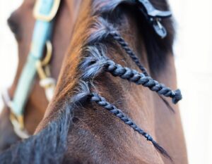 A beautifully plaited mane enhances a horses neck and shows off well developed muscles. Carefully sculpted plaits can be used to create illusions too, including making the horse look like it has more topline or hide a cresty neck.