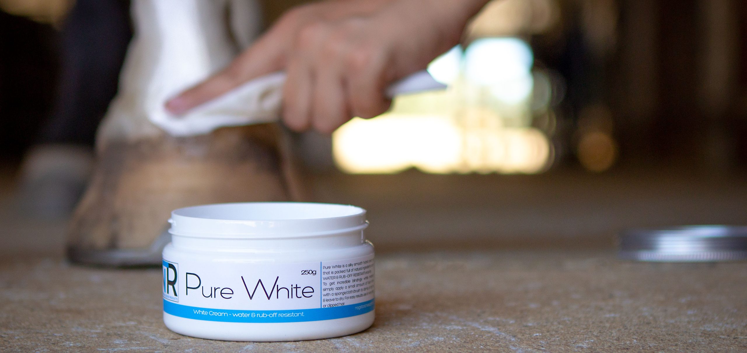 A person cleaning a horse’s hoof with a jar of pure white. A person cleaning a horse’s hoof with a jar of pure white.