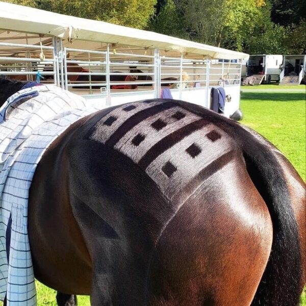 HSE Q-Set Quarter Mark Spray is a light, flexible hold setting spray designed specifically for equine coats to help you create professional, sharp quarter marks and sharks teeth patterns on horse hair.