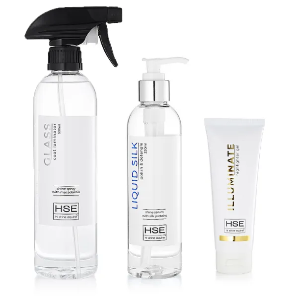 HSE Liquid Silk Hair Polish & Detangler is one of our favourite products! This is SALON Quality technology at its best, we’ve spared no expense with this fantastic polish & detangler. Unlike other ‘Equine’ detanglers & polishes, Liquid Silk is not just silicone oil in a bottle! It is a premium blend of the very highest quality hair conditioning ingredients that you’ll find in any top shelf brand of Salon product.