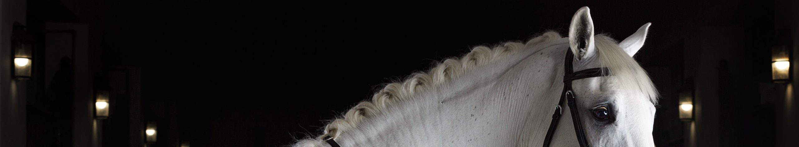 A white horse is standing in a dark room. By Kylie Wallace | 27/06/2022 A white horse is standing in a dark room.